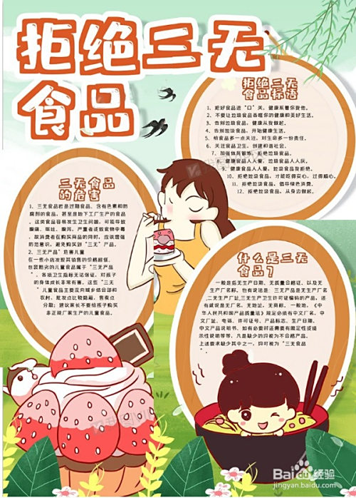 输入第二个板块《拒绝三无食物的口号》的文字内容;
