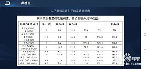每个弓手的攻速阈值的攻速阈值如下图所示,每个英雄后面的百分数暗示该英雄的攻速当作长值(如弓手虞姬的攻速当作长值为3%)