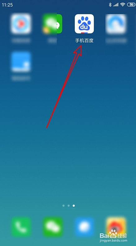 手机屏幕上摆布滑动桌面,点击安装好的百度手机版的图标。