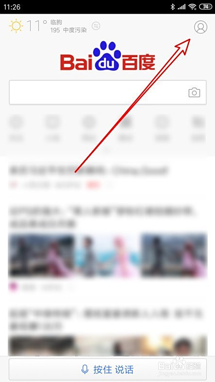 接着再打开的百度手机版软件本家儿界面点击右上角的小我中间按钮。