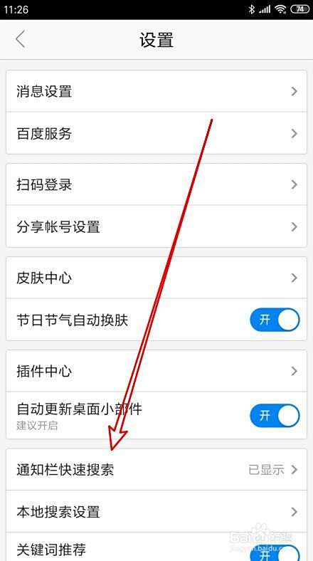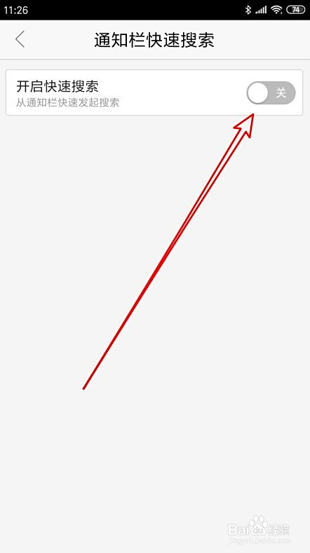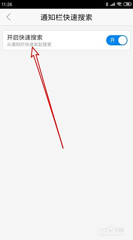 接着再打开到通知栏快速搜刮设置页面中,找到开启快速搜刮的设置项。