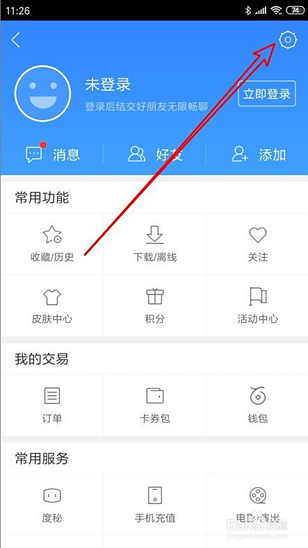 接着在打开的小我中间页面,点击右上角的设置按钮。