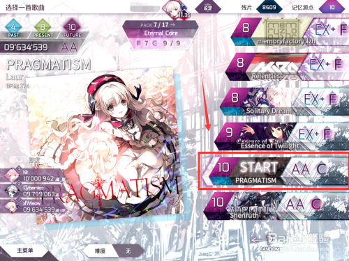 我们需要按照挨次游玩如下曲目,第一个曲目:PRAGMATISM(白魔王)。