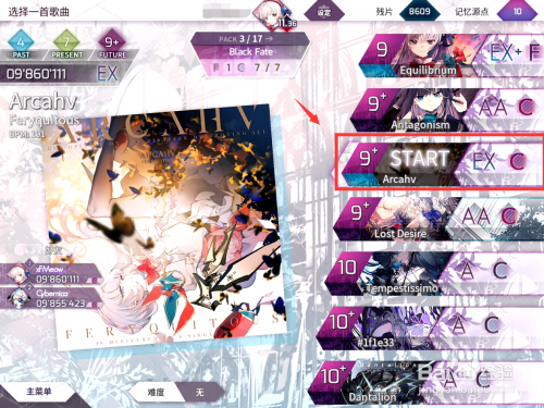 我们在游玩到第三个曲目Ringed Genesis竣事今后,系统便会主动跳到剧情傍边,我们进行赏识即可,剧情完当作今后,会强制起头曲目,游玩一遍流程即可在Black Fate曲包中找到解锁的曲目Arcahv。
