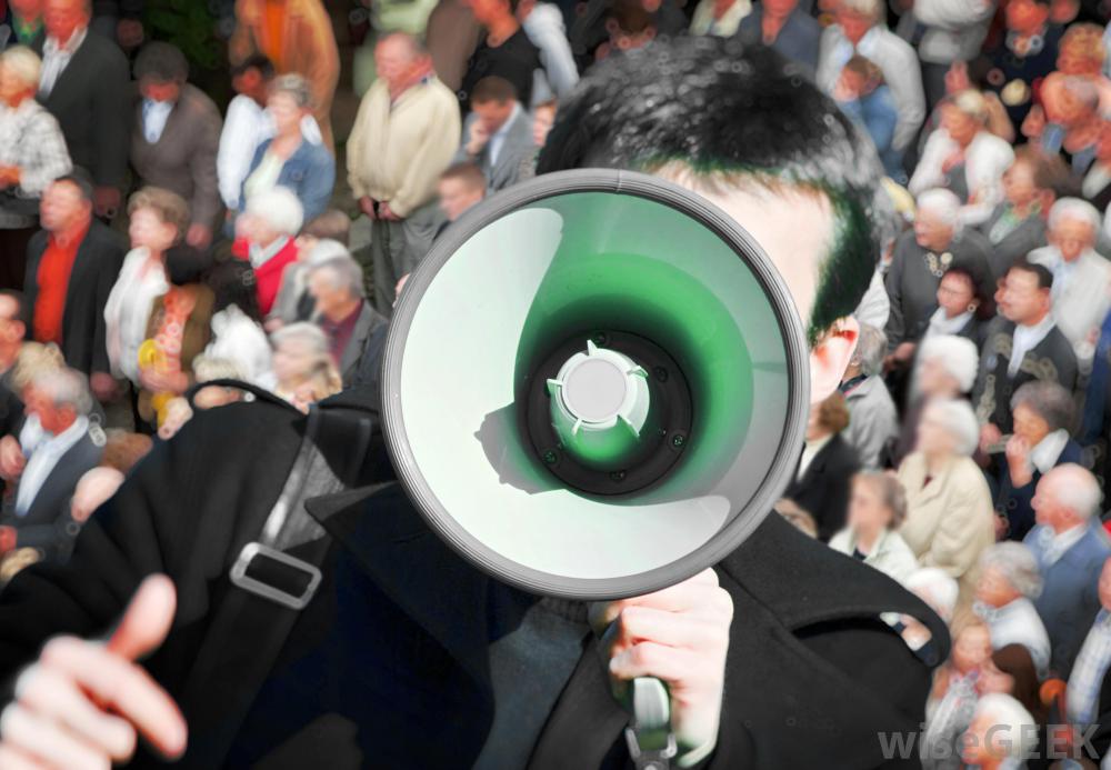 音响扩音器多年来一直是各种舞台演出的主要产品,特别是在20世纪初。杂耍演员在向更大的观众演唱时,往往依赖扩音器。叙述者和喜剧演员也使用这种设备很多年,直到麦克风技术和在俱乐部和剧院安装音响系统变得越来越普遍,许多政客在竞选期间举行户外集会时都会使用这种喇叭,而警察则经常使用这种装置与在一个建筑物内设置路障的嫌疑犯联系,拒绝向执法人员投降。