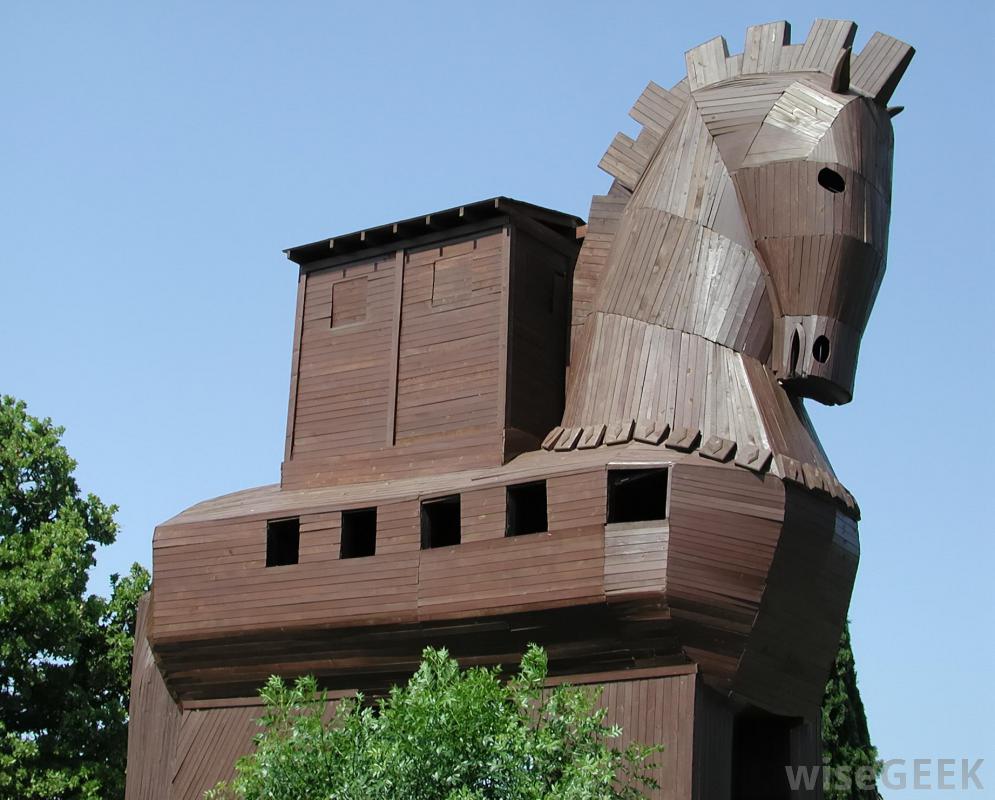 特洛伊木马程序是以一匹巨大的马命名的,它本应是一种礼物,但里面装满了希腊军队。特洛伊木马程序也同样具有欺骗性。传说希腊人送给特洛伊人一个巨大的木马作为和平祭。特洛伊的市民接受了礼物,把马带到城里,举行了一场胜利狂欢,然后就上床睡觉了。直到希腊士兵放火焚烧了这座城市,他们才意识到自己被骗了。影响电脑的特洛伊木马也可能包含一些令人讨厌的惊喜。它可以破坏、删除,或者销毁重要文件。
