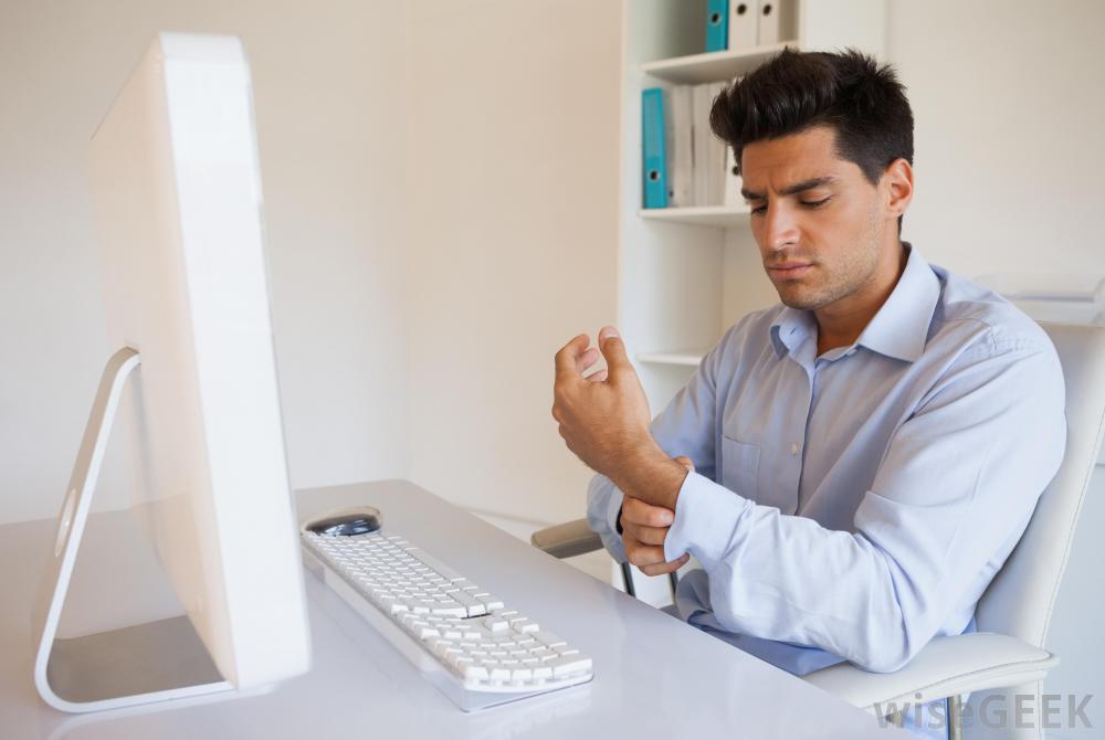 计算机软件工程师坐在电脑前会感到眼睛疲劳和疲劳长时间的。