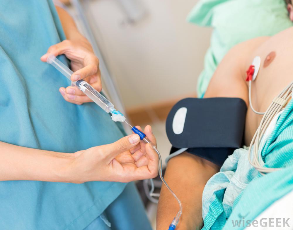 在一种类型的丸注注射过程中,使用注射器将药物推入患者体内并进行静脉注射。