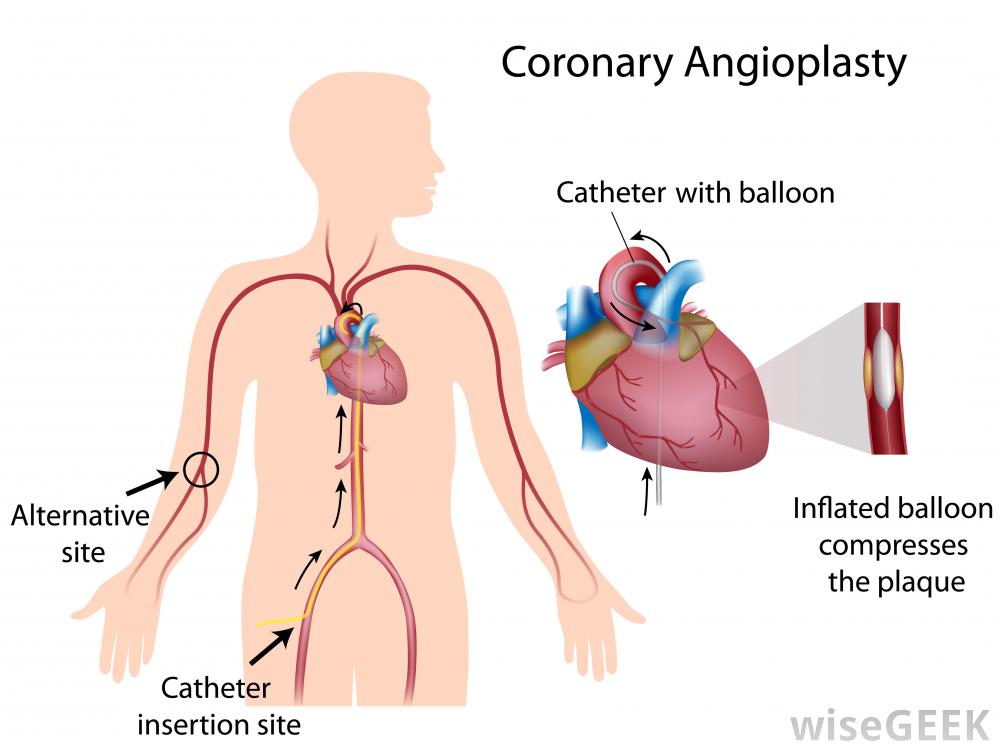 心绞痛,胸部疼痛,表示缺氧流向心脏,是动脉狭窄或阻塞的一个警告信号。如果饮食和药物不能控制心绞痛,医生可能会推荐球囊血管成形术。血管成形术已变得相当普遍且相对安全,而且比之前的开胸手术侵入性小得多。