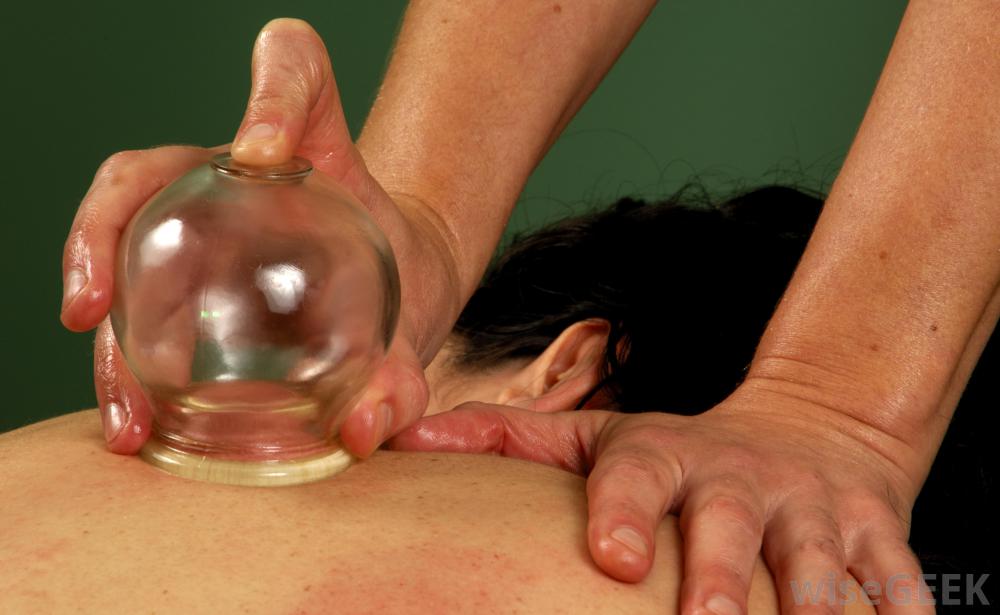 针灸拔罐是中医的一种,在这个过程中,不是用针把皮肤粘住,而是把它吸进特制的杯子里,通常是在杯子的边缘放在皮肤上之前,先把火苗插进杯子里,火就把氧气带走了,这会产生真空并将皮肤吸入杯中。针灸师声称这种方法可以增加血液循环,减轻疼痛,排除体内毒素。
