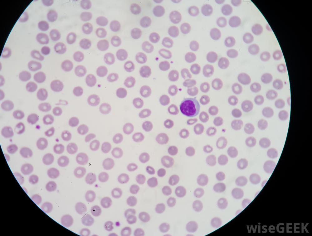 嗜碱性粒细胞,它们会在血液涂片上染上深紫色,含有可能因万古霉素而释放的组胺。