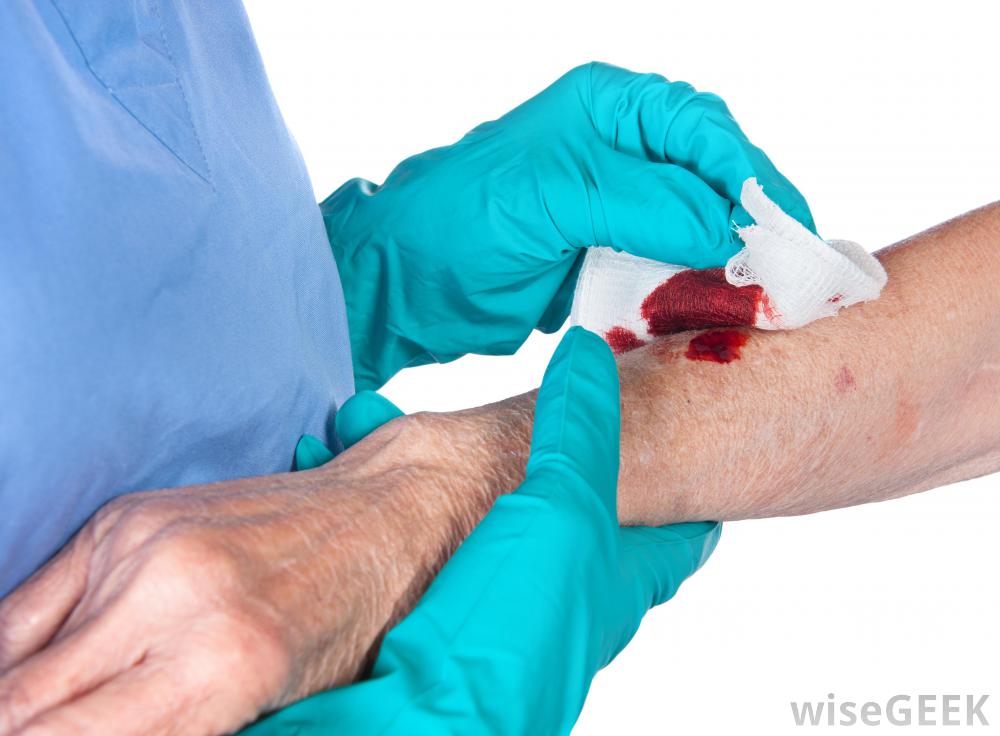 从业者,不同类型的伤口用品可用于不同类型的伤害。这些用品包括烧伤护理用品、治疗感染伤口的用品、动物咬伤用品和刺伤用品。医院、诊所提供的不同类型伤口用品的一些例子,救护车包括:医用绷带;伤口引流管;可附在渗出伤口上的收集袋;用于皮肤闭合的缝合器;外科针头和缝线;以及外科胶水等专用伤口闭合产品。