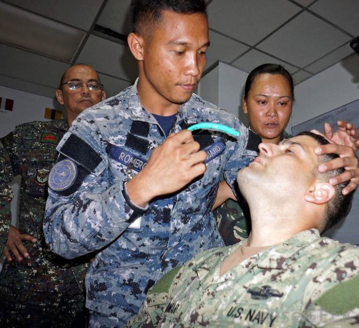 口咽气道的插入方式有两种,首选的方法是用压舌器按住舌头,同时将OPA插入喉咙。关键是避免用口咽气道的尖端将舌头推入喉咙,但在不太理想的情况下,这也可以不用压舌器。无论插入方式如何,第一步都是确定合适的腭裂大小。这是通过将腭裂放在受害者的下巴旁边来完成的,法兰与口的开口对齐,尖端位于受害者的耳朵处。如果OPA明显长于或短于从口开口到耳朵的距离,则可能无法保持气道通畅或造成进一步的阻塞。