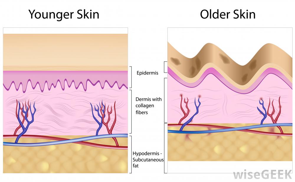 一张显示老年皮肤中胶原蛋白减少的图表。许多基于胶原蛋白的产品旨在替代或促进这种蛋白质的产生。