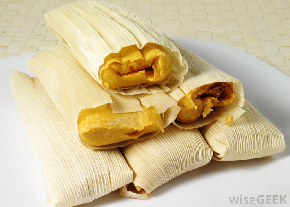 玉米粉蒸肉是一种新世界的食品,它是将各种原料包在一个丰富的玉米面团中,然后将玉米壳、香蕉叶或玉米叶包裹在面团包裹上,形成一个包,然后进行蒸煮。完成的玉米粉蒸肉通常都是原味的,尽管根据地区的不同,它们可能会配上各种饮料,有时玉米面也喜欢豆子。