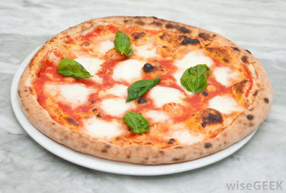玛格丽塔披萨是一种披萨,它是用小麦面做成的,上面撒有马苏里拉奶酪、罗勒、橄榄油和西红柿。它起源于意大利,最初是用来代表意大利国旗的红、绿、白三色,当送给玛格丽塔女王时。虽然配料很少而且简单,制作一个正宗的玛格丽塔披萨应该遵循不同组织为传统那不勒斯美食制定的一些具体指导方针。在正宗的制作中,馅饼的外壳非常薄,除了罗勒以外,没有其他香料。术语"玛格丽塔披萨"也适用于更熟悉的只包括一些番茄酱、大蒜、马苏里拉和罗勒叶的披萨,而不考虑其外壳风格。
