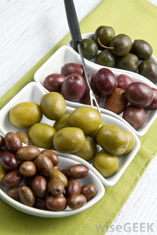 因为橄榄树原产于地中海,所以绝大多数独特的橄榄制品都是地中海性质的。基本上,它们可以分为两种类型:绿色,在幼年时采摘,以获得更浓、更具侵略性的味道;黑色,橄榄在成熟时被采摘。橄榄在食用前也必须经过腌制,可以干腌、油腌、盐腌、盐水腌制、水腌,或者在腌制前用碱液处理。