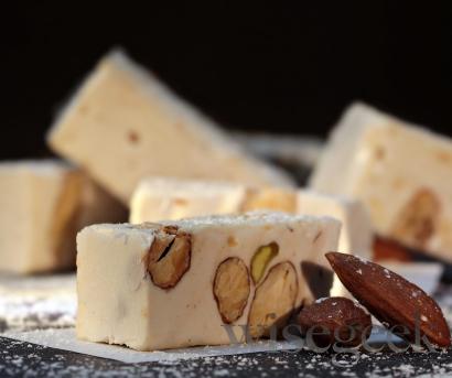 牛轧糖是一种由糖、蜂蜜和坚果制成的耐嚼、极甜的糖果。