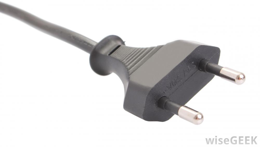 220伏交流电源插头。即使在一个国家内,交流电源插头也会因负载大小而有所不同设计用于传输美国的'标准'交流电源插头是为家用电流而设计的,在125伏时电流可达15安培。它由两个平行的金属刀片组成,每个刀片长0.625英寸(1.6厘米),宽0.25英寸(6.35毫米),可能包括第三个插脚:与刀片长度相同的刚性圆柱形金属插脚,与电源插座上的一个匹配孔相匹配。自20世纪50年代以来,许多交流电源插座都是用极化槽制造的,中性槽比热槽宽。这种配置确保了只有用合适的方式才能在插座上插入极化交流电源插头和更宽的中性叶片,确保设备内部的电流正常。