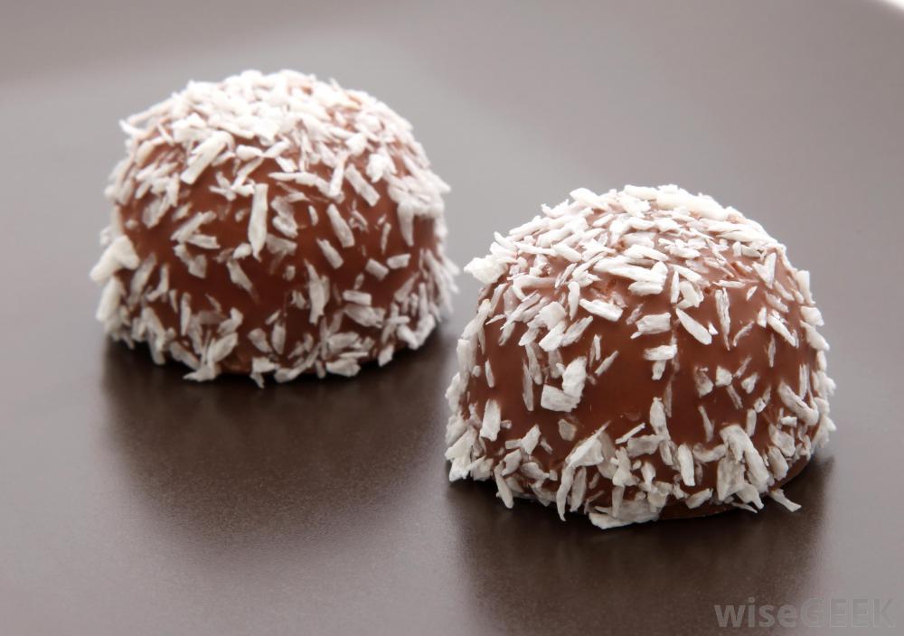 覆盖在椰子薄片中的巧克力。