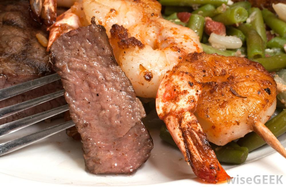 有些牛排馆会提供一份虾和一块很好的肉片,供冲浪和草皮用餐。