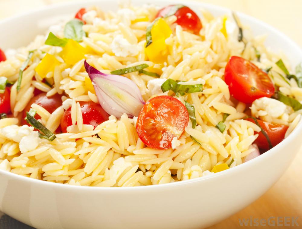 包括樱桃番茄的奥佐沙拉,黄辣椒和洋葱