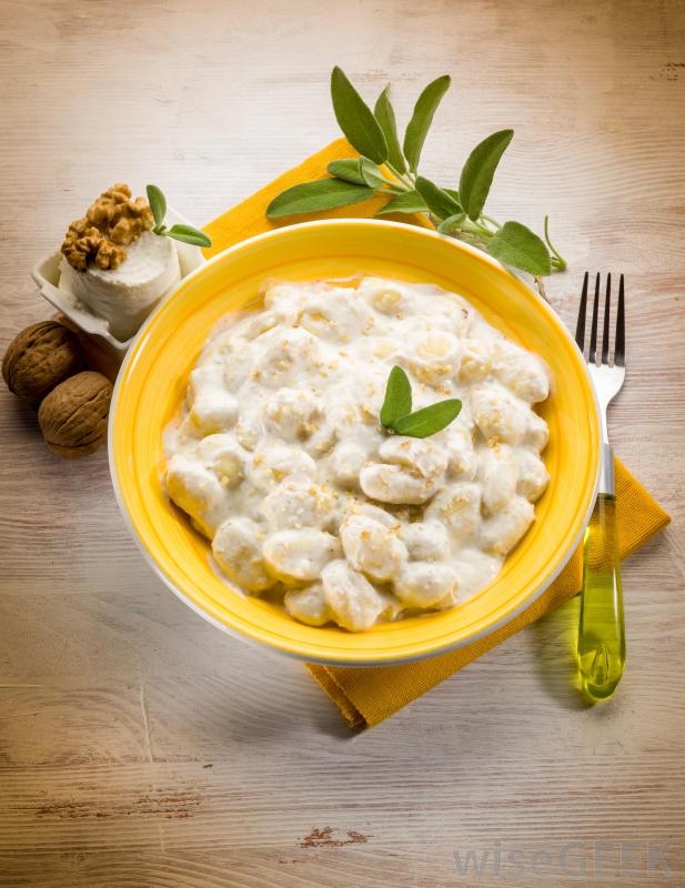 Gnocchi和其他意大利面食通常都是放在酱汁里的,以番茄为原料,通常包括罗勒、牛至、大蒜和洋葱等香草。许多经典的意大利菜只需在基本的意大利面和沙司菜中加入橄榄油炒蔬菜或各种肉类和奶酪。