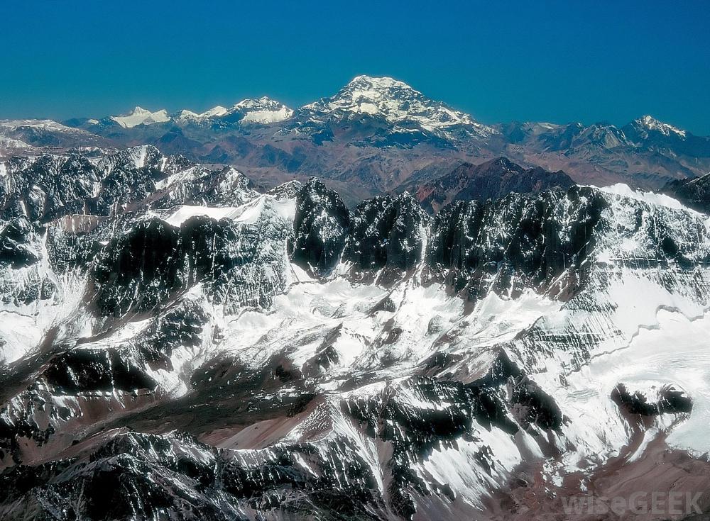 安第斯山脉横跨7个国家:阿根廷、玻利维亚、智利、哥伦比亚、厄瓜多尔、秘鲁,还有委内瑞拉。最高的山峰是阿空卡瓜亚,海拔22841英尺(6962米),是亚洲以外世界上最高的山峰。作为南美洲大陆最高的山峰,它是七个首脑会议的一部分。安第斯山脉中另一座著名的山是钦博拉佐山,世界上离地球中心最远的地方(由于地球赤道隆起)。和安第斯山脉的许多其他山脉一样,奇姆博拉佐火山是一座火山,尽管它最后一次喷发是在1000多年前。作为一个火山活跃区,安第斯山脉是环绕太平洋的"火环"的一部分。