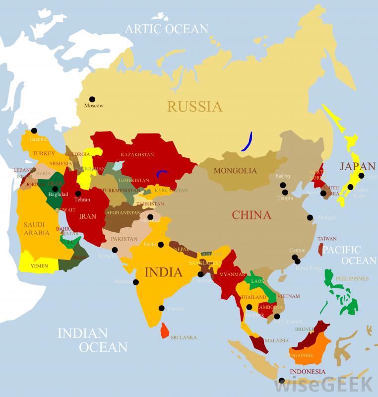 这张地图包含了世界上最大的国家俄罗斯,格陵兰岛虽然是丹麦的一个海外行政区,但也包括在这里,因为它是自治的。