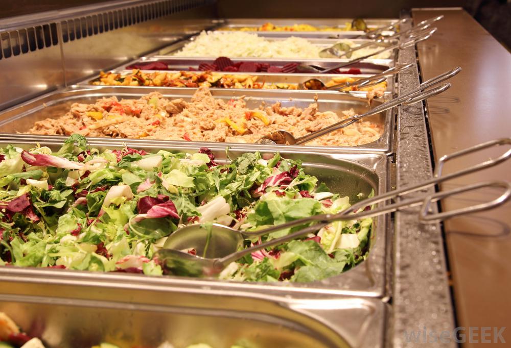 餐厅自助餐的食物通常放在热碗柜中。
