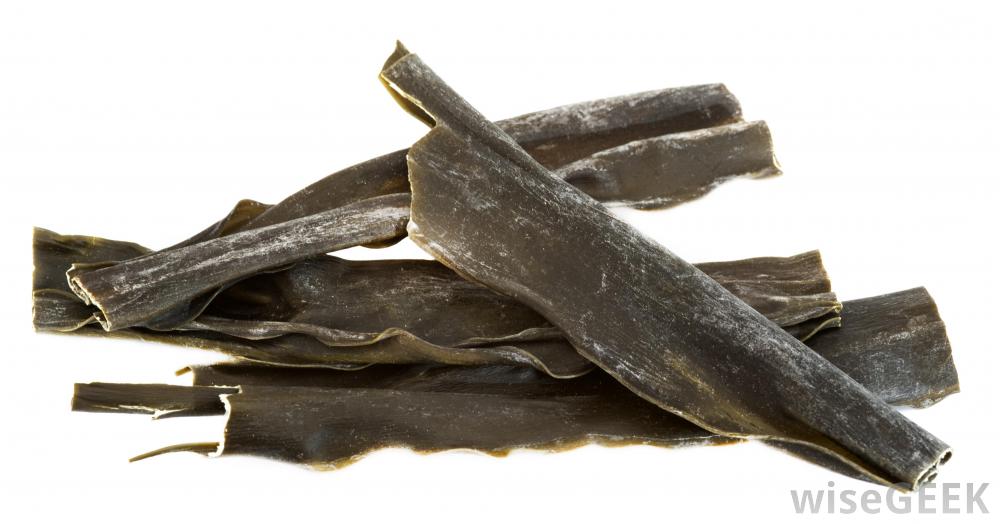 Kombu是由日本、韩国和中国种植的一种海带制成的。一旦收获,巨大的带状海藻叶晾干后包装出售,成品呈皮革状,海带也富含谷氨酸,还有碘和膳食纤维。