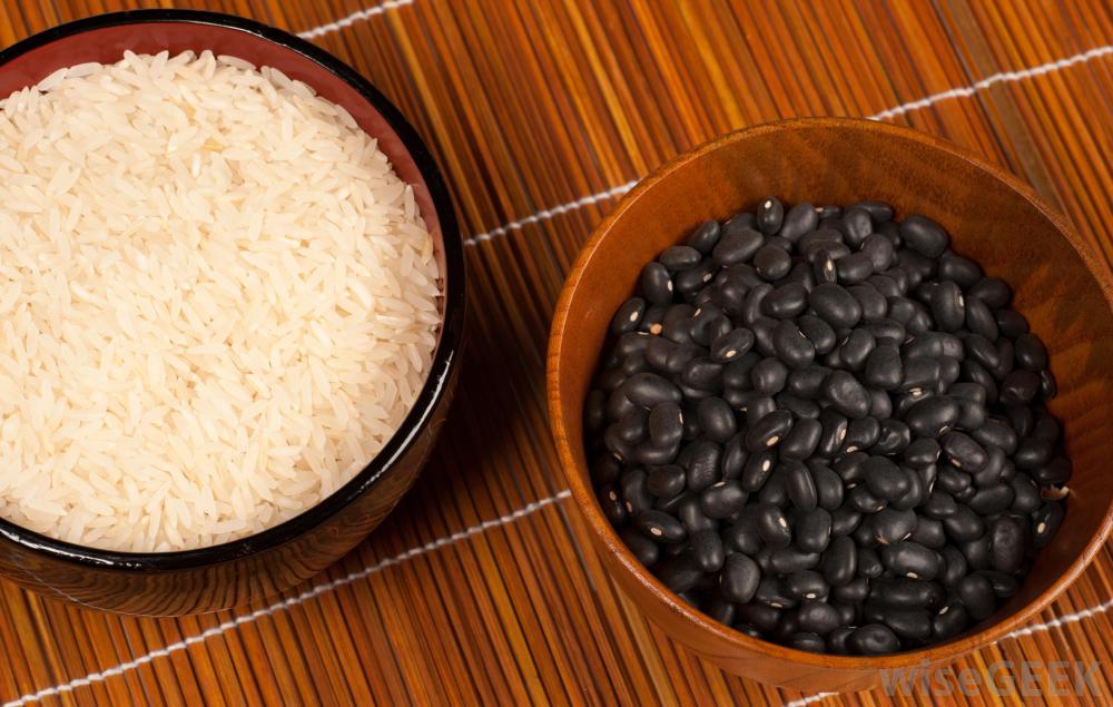 用发酵黑豆制作的炒菜可以放在营养丰富的糙米上食用。