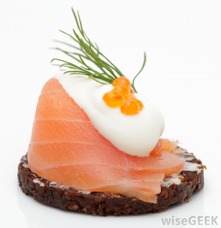 法式法式三文鱼小吃,鱼子酱和莳萝。