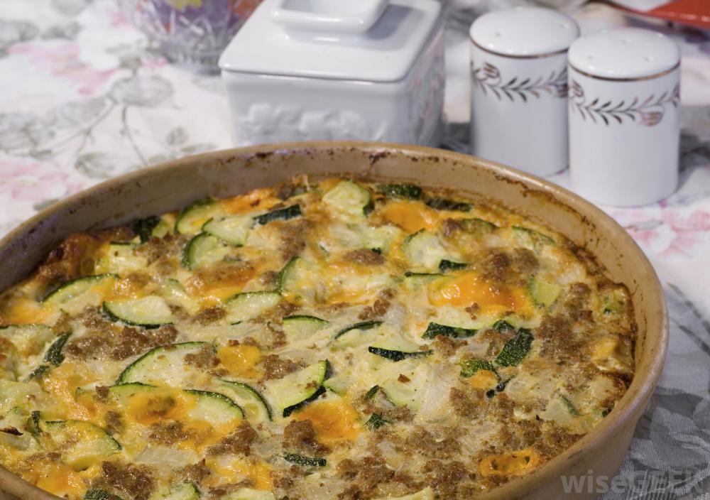 可以在这道菜中加入蛋白,包括绞碎的香肠或火鸡肉。肉在放入黄南瓜砂锅之前应先煮熟。在烹调过程中,它可以与其他蔬菜混合,在焙烤前与黏合剂混合。