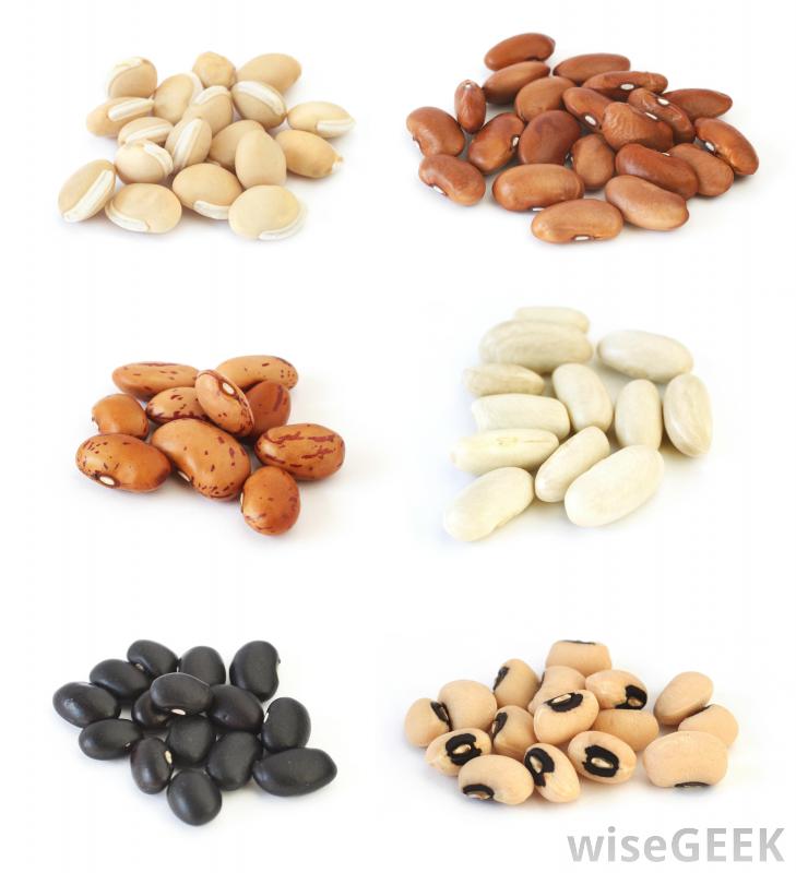 什锦豆,包括左上角的风信子或扁豆豆和右中的cannellini豆。