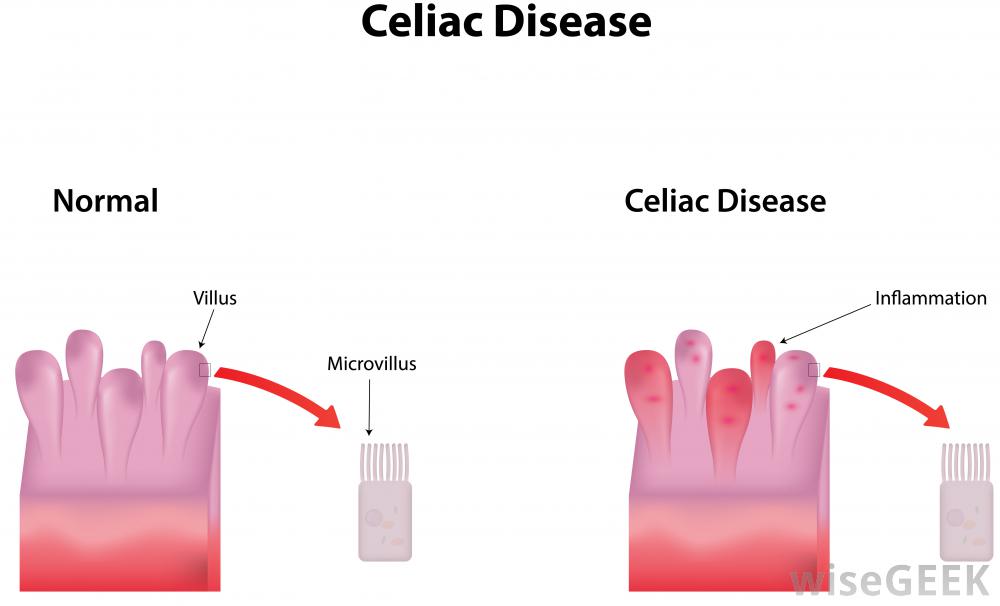肠壁绒毛的损伤是由机体引起的;对食用谷蛋白的自身免疫反应。