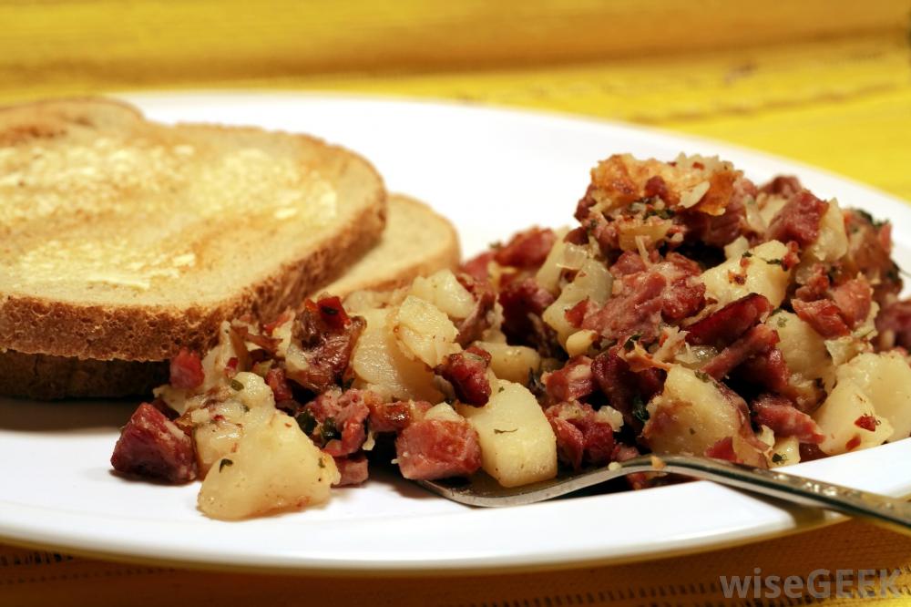 虽然腌制牛肉杂烩的食谱有很多种,但大多数都遵循一些基本的配料表,包括腌牛肉、土豆和各种香料或调味料。例如,在美国,这些菜通常一起放在热锅里煮,通常是用铸铁做的,上桌时加一个煎蛋另一方面,英国通常是用罐装肉做的,不一定要和鸡蛋一起吃。这种肉罐头的使用与美国人的食谱形成了鲜明的对比,美国的食谱通常是用新鲜的、剩下的腌牛肉来做这道菜。