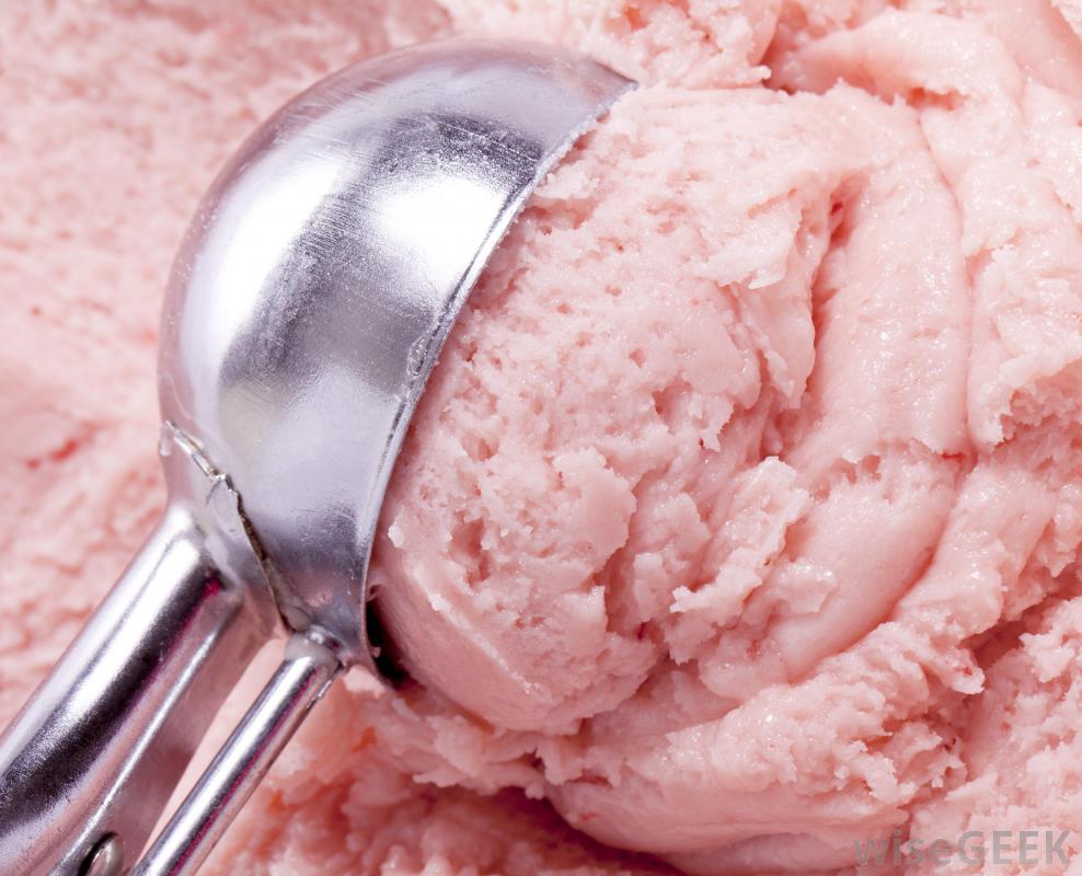 草莓。制作冰淇淋时通常使用牛奶和奶油,这种口味也不例外。大多数都含有砂糖,但也可以使用玉米糖浆或人造甜味剂,其他可能添加的成分包括鸡蛋和香草精,草莓或人造调味料通常是制作草莓冰淇淋时最后添加的成分之一草莓冰淇淋搅拌好后,应放在冰箱里几个小时直到它变硬。和其他类型的冰淇淋一样,这种冰淇淋必须保持冷冻直到可以吃。如果让它达到室温,它就会融化当草莓冰淇淋在冰淇淋店提供时,通常是放在盘子里,放在圆锥体上,或是奶昔里。许多人也喜欢在家里吃,在那里他们可能会用它来制作冰淇淋圣代。它通常会加上额外的配料;一些有时与这种食物一起享用的食物包括草莓酱、生奶油面层或糖果撒在一起。