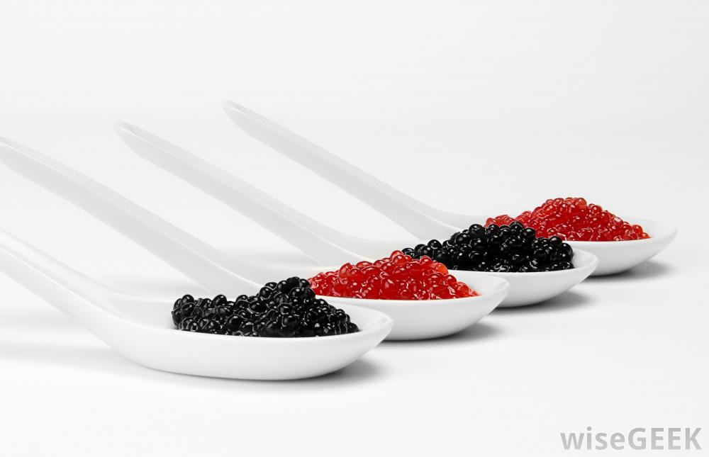 三文鱼小吃,配以crème fraîche、鱼子酱和莳萝。