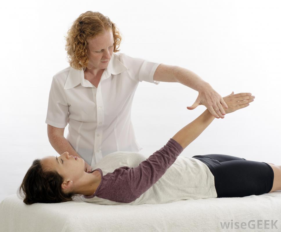 一名运动治疗师可能会帮助遭受身体创伤的人。