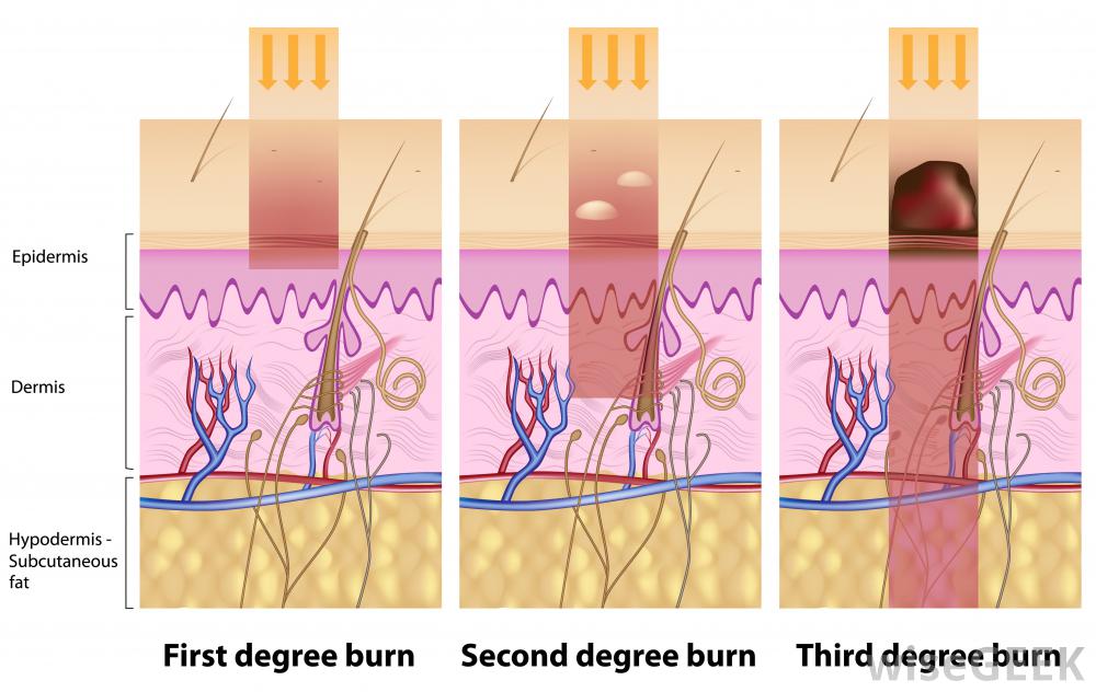三度烧伤。烧伤是一种复杂的伤害,需要立即进行专业护理。在紧急情况下提供的护理类型取决于烧伤的类型和严重程度。除了用适当的医疗程序处理烧伤部位外,还必须保持循环和呼吸。液体通常是静脉注射的,止痛药也是。病人的生存取决于医务人员的迅速和果断的行动