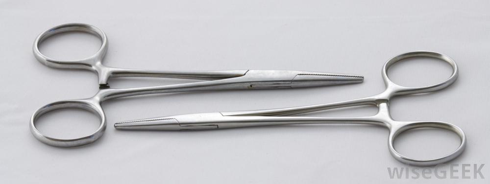 止血钳用于控制出血。子宫钳可以是锁定的或非锁定的。锁定镊子像一把剪刀一样在中心铰接,可以放置到位并释放非锁定型的形状更像镊子,必须挤压才能保持夹紧。品种可以是不锈钢,每次使用后必须在高压灭菌器中消毒,也可以是塑料制成的一次性镊子,可以丢弃