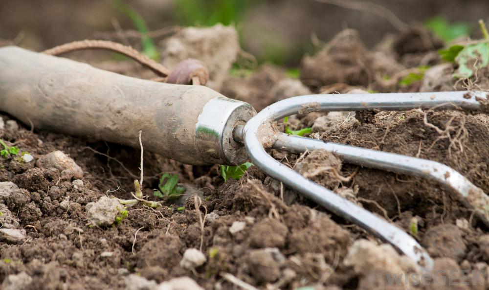 园艺工具。铲叉像铲子一样平而方,但是有很长的金属叉齿。铲叉是理想的花园工具,用来粉碎大块的泥土。花园耙有金属叉齿,耙头有角度以覆盖一个大的表面花园耙是用来耙土,以帮助清除岩石,甚至平整花坛的水平面。草坪耙,可以是竹子,塑料,或轻金属制成的,不同于花园耙,因为它们不是用来在土壤中使用,而是用来耙草草坪上的叶子