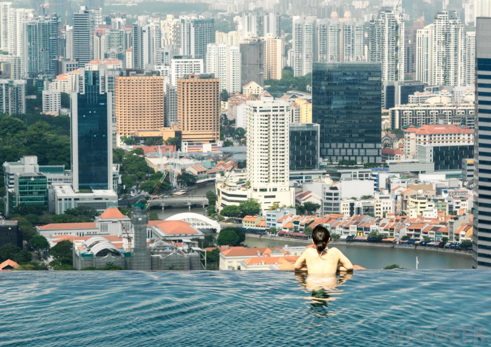 一个无限大的游泳池,有时被称为负边缘游泳池,是一个游泳池,它的建造有一个一直延伸到地平线的假象。从正确的角度看,这个游泳池似乎无限延伸,承包商经常将游泳池放在战略位置,使其看起来与更大的水体融合,如海洋。这种引人注目的游泳池设计在20世纪90年代开始流行起来,并被许多豪华度假村采用,它们在宣传册和其他宣传材料中兜售他们的无限游泳池。