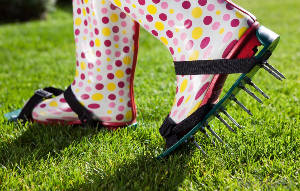 曝气鞋有一排锋利的三角形鞋底有钉子。如果你的草坪基本上是健康的,可以考虑穿透气鞋。这些看起来奇怪的凉鞋鞋底上有一排尖尖的三角形尖刺。它们绑在你的普通鞋子上一个小的投资,他们可以为一个郁郁葱葱的草坪作出贡献。对于那些已经在他们的院子里一周好几次的人来说,草坪曝气鞋是一个很好的选择。他们给你锻炼,并提供了一个持续的,但不太强大的,尖峰曝气的方法你的草坪季节性处理,如施肥、播种和通风,也可以通过一个简单的步骤来完成。如果你只想一年两次被主要的草坪护理所困扰,你可以考虑投资一个巨大的草坪维护设备,叫做插头或取芯曝气器。这个巨大的,宽的,自动工具实际上是在你的草坪上取芯,并从地面上移除一些小土塞,这样就有了明显的洞。如果你在维护一个交通量非常大的区域,比如游乐场,取芯曝气器是个不错的选择,运动场或狗公园。在这种情况下,考虑到草坪承受的压力,这种更具戏剧性的草坪曝气器可能是值得的。对于一个小的,个人草坪,这种方法可能是令人望而却步的昂贵和不必要的。考虑租用这种工具一年或两次在这两种工具之间有一种折衷的选择,可以提供一种半自动但高效的通风方法。旋转钉状草坪曝气机类似于一台推式割草机,上面堆着巨大的水泥块,使其有足够的重量穿透紧凑的草坪。如果你虽然没有足够的储物空间或预算,但你需要比钉鞋更大的东西。