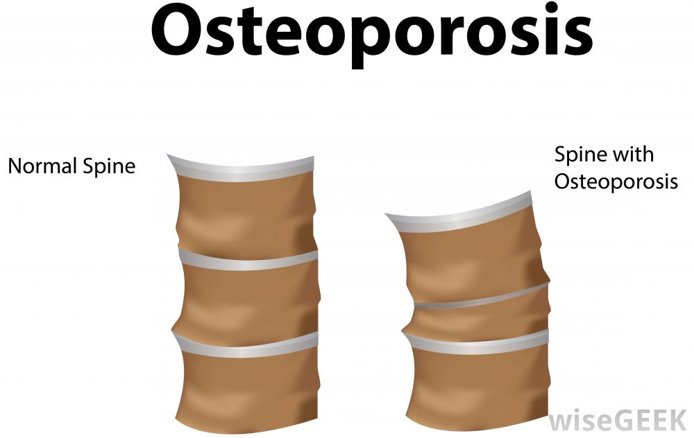 患有脊柱后凸的个体可能有驼背的外观。第三种形式的胸部后凸称为骨质疏松相关的后凸背部压缩性骨折,通常是由于骨密度低骨骼无法提供足够的支撑,导致上背部弯曲。治疗范围将取决于骨密度问题的严重程度。在某些情况下,运动和物理治疗实际上可能造成的伤害大于帮助