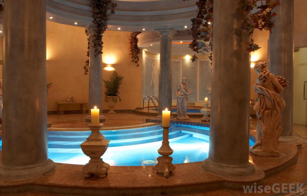 在罗马时代的卡尔达里厄姆,洗澡的人会在皮肤上擦香油。在罗马时代,沐浴设施是用一种称为低气压的系统加热的,地板下的一系列加热空气和水的炉子。水管把水送到水垫塘,而空气在地板下循环加热。一些温泉浴场连接着地热能的天然温泉取暖,在这种情况下,水管可能会穿过地板,用泉水加热,caldarium接收到最热的水和空气,将其加热到略高于正常人体温度的温度,甚至更高,这取决于spa