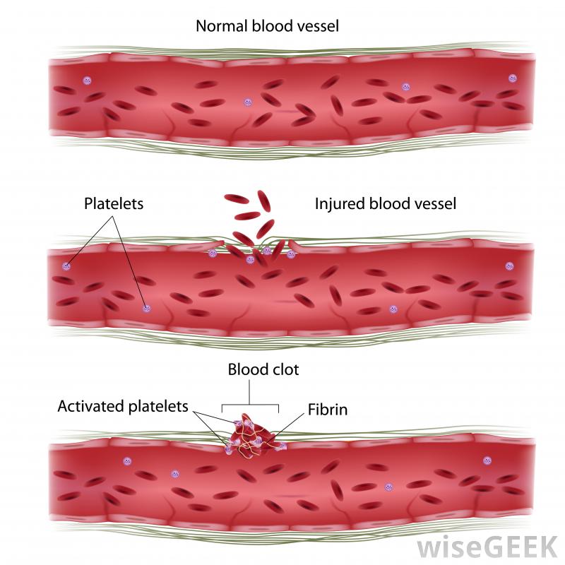 显示血液成分的图表,包括血小板细胞,这对凝血很重要。血管受伤时凝血是非常重要的如果没有血液凝固过程,穿刺伤口、伤口或擦伤(即使是很小的伤口)都会持续出血,可能导致生命损失。凝血因子缺乏会导致手术或受伤后出血。在血友病这样的情况下,凝血缺陷与遗传缺陷有关在其他凝血异常中,这些缺陷可能是后天条件的结果,如维生素K缺乏。血友病发生时,血液不能有效凝结。这种医学状况是由一种隐性特征引起的这意味着血友病的遗传性很容易感染,也就是说只有女性的遗传性出血才会导致出血,也可能出现尿出血、大便出血和小切口出血。有时,血小板减少症等疾病会影响血液凝固。这种情况会导致血小板数量非常少。血小板在凝血或凝血中起重要作用,当数值异常低时,为了防止出血过多,必须进行医疗干预。有时某些药物会影响血液凝固。这些药物包括抗凝血药,如香豆素®,甚至阿司匹林。这些药物用于稀释血液,防止有心脏病发作和中风风险的血栓