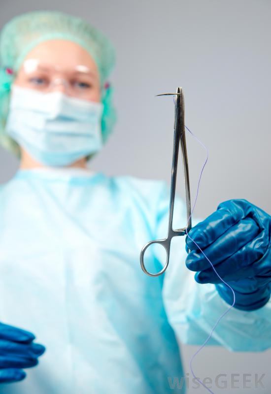 对于皮肤脆弱的患者,可以使用皮肤闭合带代替缝合线。外科缝合线,从古埃及时代就开始使用,分为可吸收或不可吸收。非吸收性缝线通常由丝绸、聚酯或尼龙等材料制成。可吸收或可吸收缝线由原材料羊肠线制成,或由合成物制成,如聚乳酸、聚二氧环烷酮或己内酯