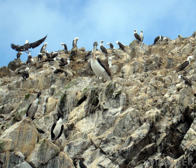 岩石上沾有海鸟粪。鸟粪是蝙蝠和海鸟的排泄物。该名称源于印加人用"鸟粪"这个词来形容海鸟粪,但现代用法中也包括蝙蝠粪。在19世纪中期,鸟粪在美国农业生产中被广泛使用